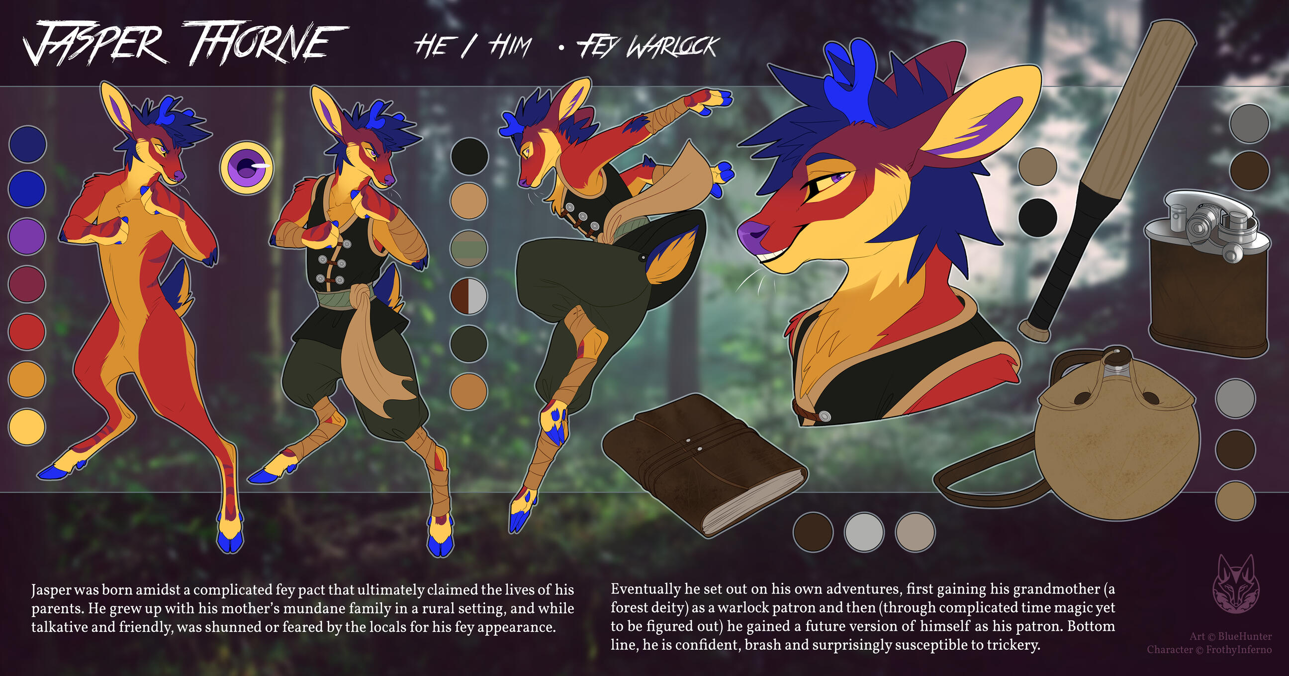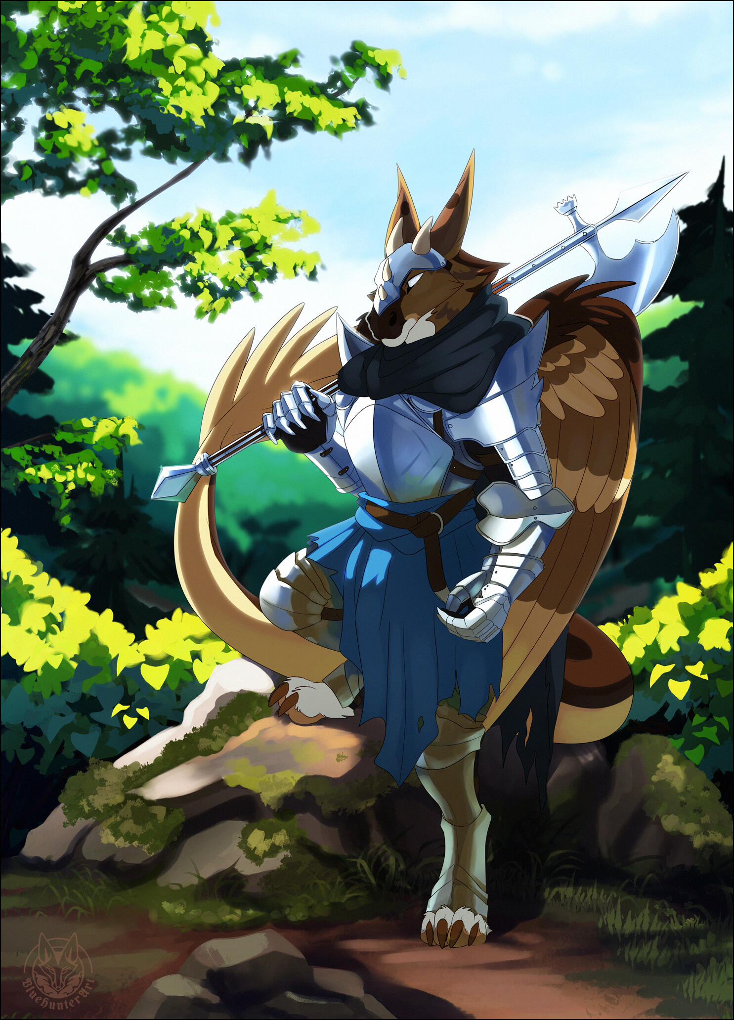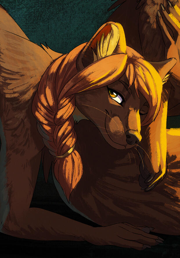 If you - as an individual person, not on behalf of a company - commission a character design from scratch by me, I create a character whose usage rights I'll transfer to you. You'll be able to use the character to your liking: In commissions, published books (e.g. commissioned another artist to illustrate a cover / use them for your stories), as fursuit design.