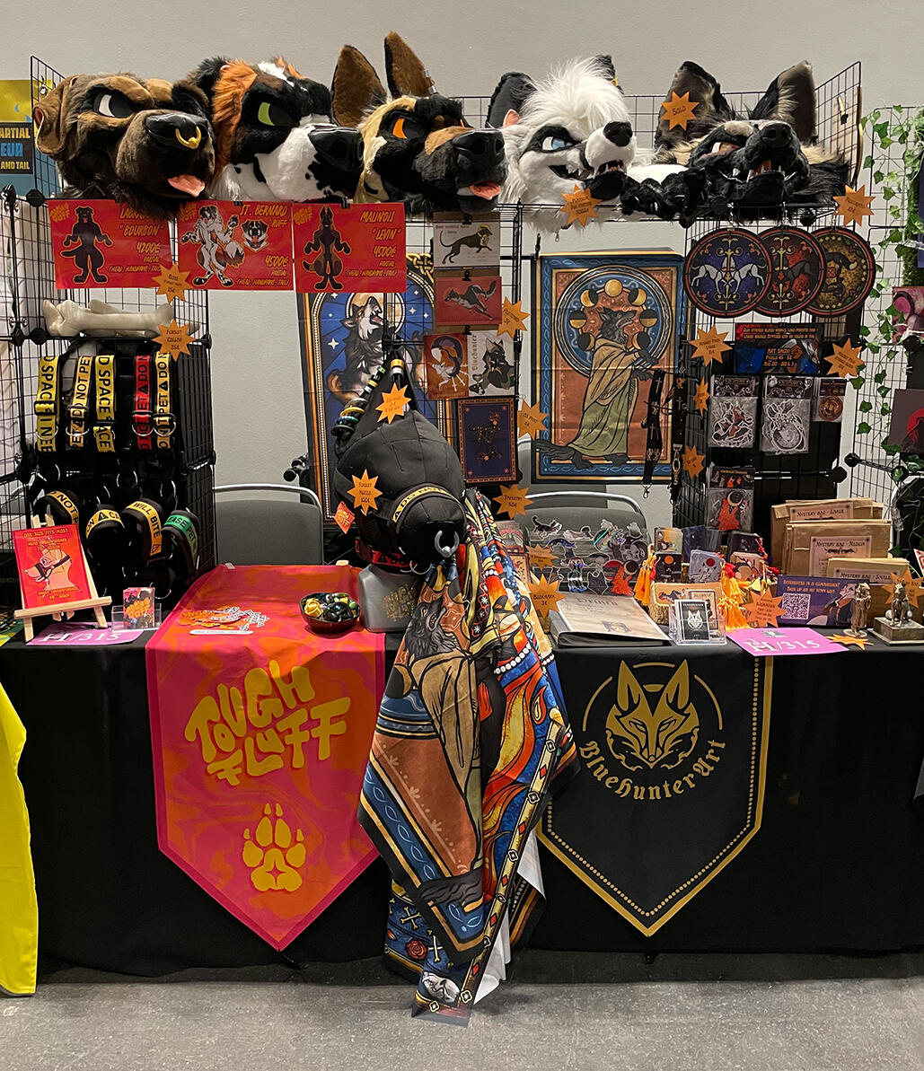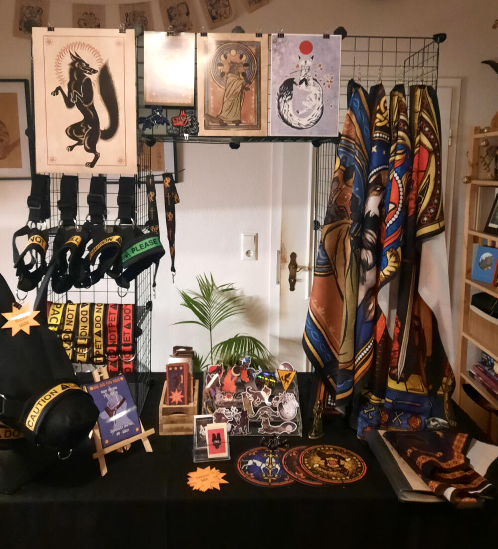 I'm a passionate furry artist and have been creating arts for the community for nearly two decades already. As of 2024, I started vending at conventions with a wide variety of handmade goods for any budget that I made by myself in my small homestudio.Together with my partner TOUGHFLUFF I love to create furry-focused arts in many forms and thus - if possible - would love to share a table with him as we love to work in as a team!For every convention I aspire to bring something new and unique with me!Thank you for taking your time to read my application and to consider me!